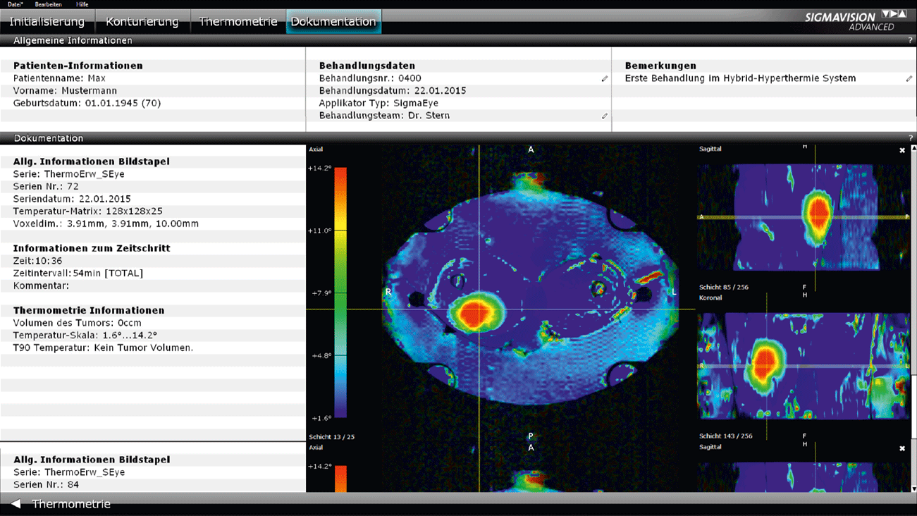 Das Softwarepaket SIGMAVISION ADVANCED bietet ein professionelles Tool, mit dem Temperaturveränderungen im Patienten während der Behandlung erfasst werden können.